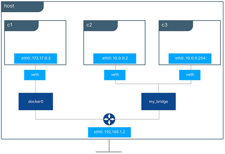 $ docker run -itd --name c3 --net my_bridge --ip 10.0.0.254 busybox sh