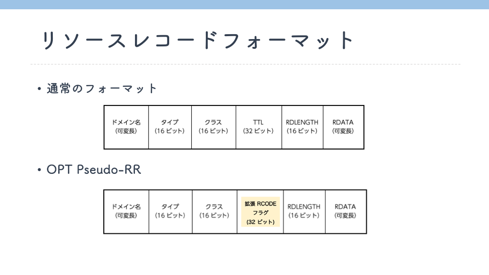 TTL のパートで拡張 RCODE やフラグが設定される。
