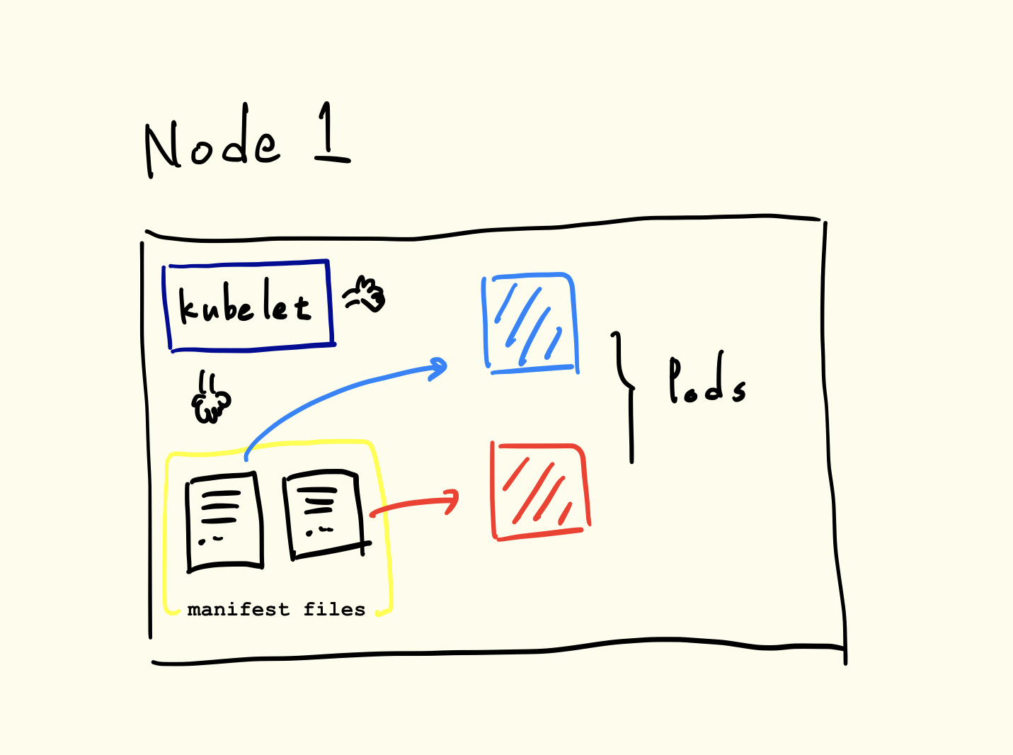 Static Pod 用のディレクトリが存在しており、そこに Pod の manifest file を配置することで kubelet が Pod 作成を行う。